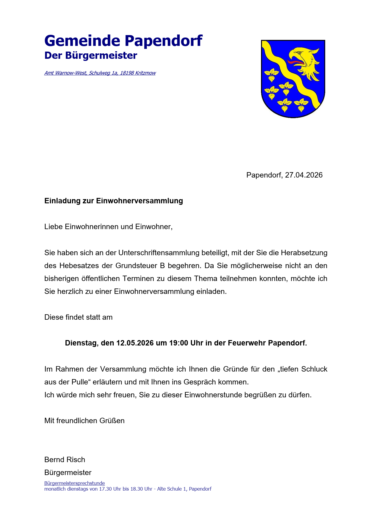 E-Mail: buergermeister@gemeinde-papendorf.de